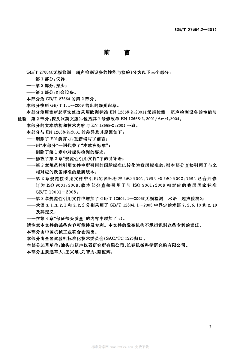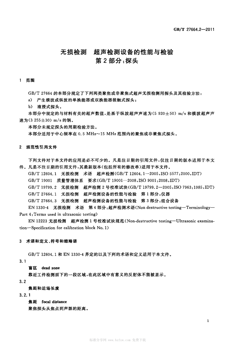 GBT 27664.2-2011 無損檢測(ce) 超聲檢測設(she)備的性能與(yu)檢驗 第2部分(fen):探頭