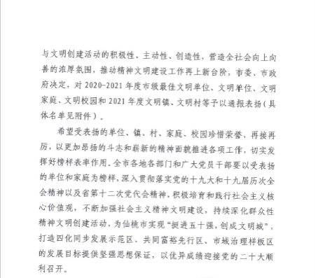 仙桃分院(yuan)獲2020-2021年度刘🔞亦菲艳门禁照🚩市(shì)級最佳文(wen)明單位