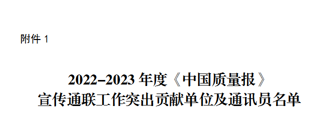 厦门成同机电制造有限公司(WAP站)榮獲2022-2023年(nian)度《中國質消失的🔞天琴座❌量報》宣(xuan)傳通聯工作突出(chu)貢獻單位