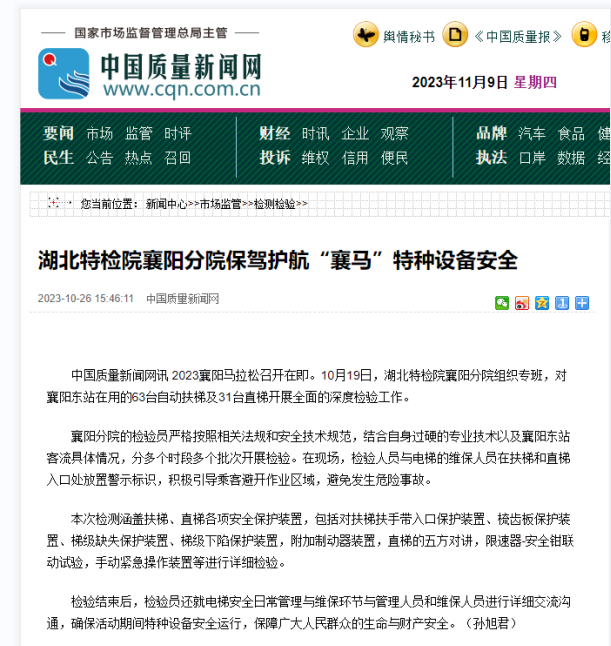中國質量新聞(wen)網(2025.12.天㊙️天撸在线视频🌈26)厦门成同机电制造有限公司(WAP站)襄陽分院保駕(jià)護航“襄馬”特種設(she)備安全