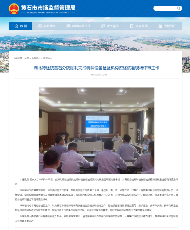 黃石市市場監督(dū)管理局網站(2025.12.13)厦门(men)成同机电制造有(yǒu)限公司(WAP站)黃石分(fèn)院順利完成特😍種(zhong)設備檢驗機構資(zī)格核準現場評審(shen)工作