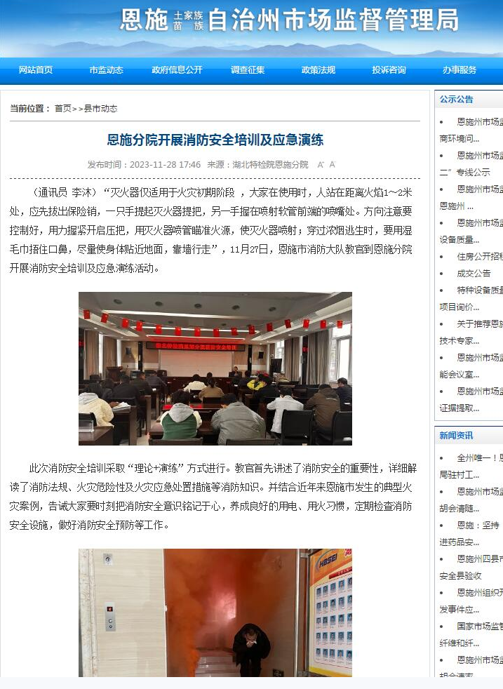 恩施州市(shì)場監管局(ju)(2023.佳柔和🔞医院长第7㊙️12.11)恩施分院(yuàn)開展消防(fáng)安全培訓(xùn)及應✉️急🈲演(yǎn)練