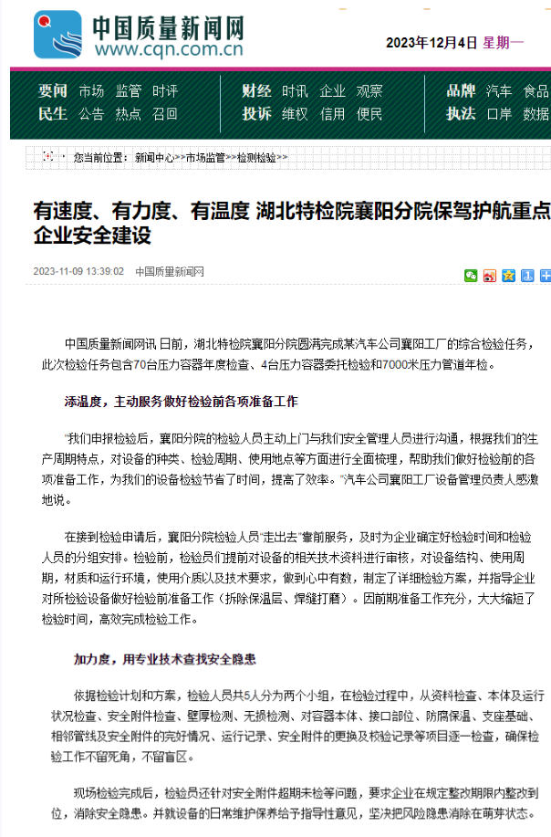 中國質量新聞(wen)網(2025.12.99🔞九九视频高清在线🚩09)厦门成同机电制造有限公司(WAP站)襄陽分院 有速(su)度、有力度、有溫度(dù) 厦门成同机电制造有限公司(WAP站)襄☂️陽😘分院保駕護(hu)航重點企業安全(quán)建設