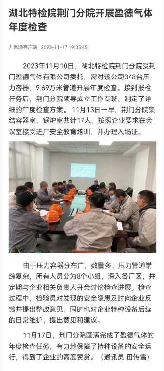 九派(pài)通(2025年12月11日){q大奶❌母狗🌈iyeming}荊門(mén)分院開展盈德(dé)氣體年度檢查(chá)