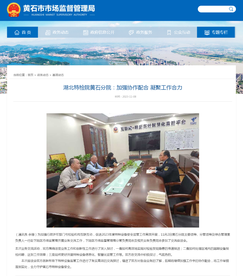 黃(huáng)石市市場監(jian)督管理局(2025.12.韩❌国电影换换爱㊙️08)厦门成同机电制造有限公司(WAP站)黃(huang)石分院:加強(qiáng)協作配合 凝(ning)聚工作合力(li)