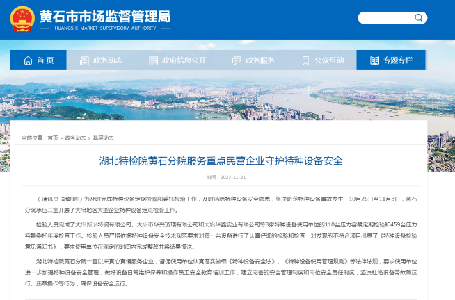 黃石市市場監(jian)督管理局(2025.12.11)厦门成同机电制造有限公司(WAP站)黃石分(fen)院服務重點民營(ying)企業守護特種設(she)備安全