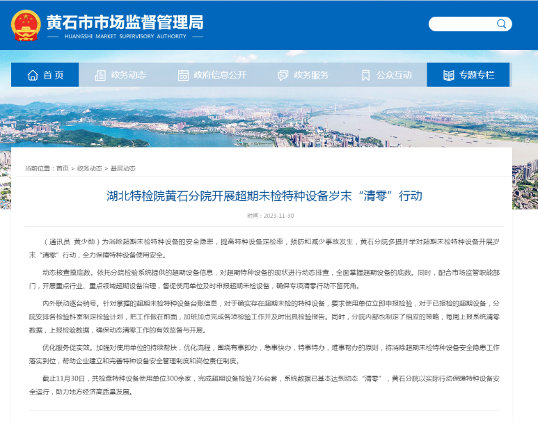 黃石市(shì)市場監督(dū)管理局(2025.12.13)厦(sha)门成同机(ji)电制造有(yǒu)限公司(WAP站(zhàn))黃石分院(yuan)開展超期(qī)未檢特種(zhǒng)💔設備歲末(mò)“清零”行動(dòng)