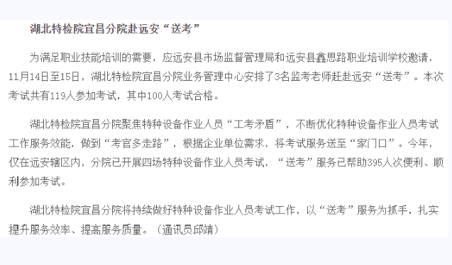三峽宜(yí)昌網(12月13日(ri))厦门成同(tong)机电制造(zao)有限公司(sī)(WAP站)宜昌分(fèn)院赴遠安(ān)“送考”