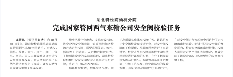仙桃周刊(2025.12.13)完成國(guó)家管網西氣東輸(shū)公司安全閥在線(xian)校👣驗任務
